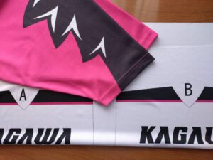 また、遠方のお客様より過去に作ったユニフォームカラーに近い色で今回新たに新規ユニフォームを作りたいと問い合わせがありましたのでお借りした色に近づけてまずは色出し色合わせ作業をしました