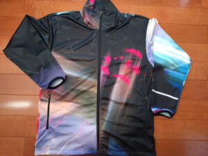 今日は日曜日に仕上がってきたオリジナル昇華ジャージとオリジナルチノパンツの検品袋入をしてお客様に納品しました 昇華ジャージは画像データを型にはめこみ製品にしました